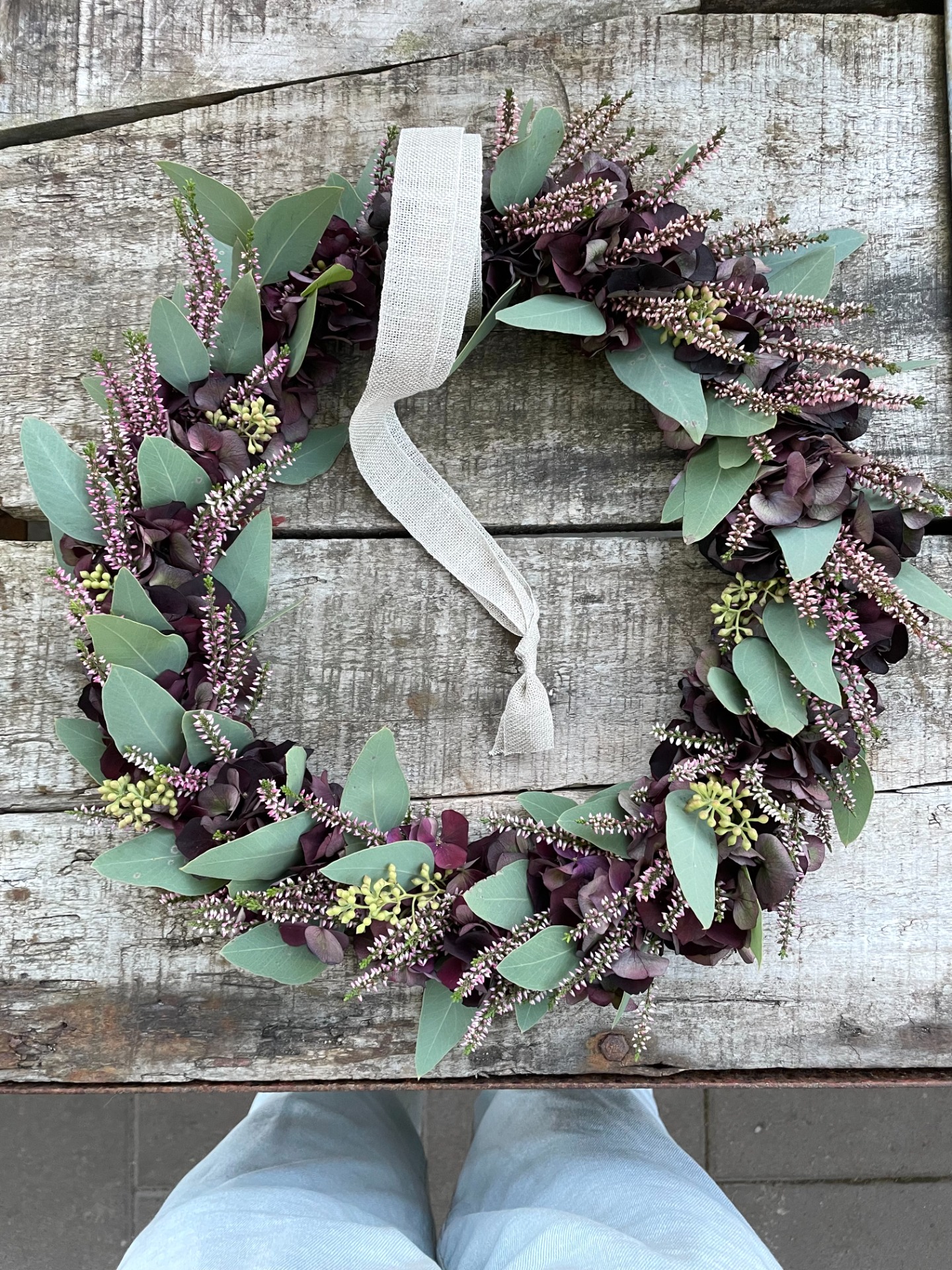 Jag använder mig gärna av Hortensia som bas när jag binder kransar, det finns så många fina färger nu på hösten och dom sorterna som finns såhär års torkar som allra bäst. Det vill jag tipsa om, köp hortensior nu på hösten och torka direkt i vas. Fyll på vasen med lite vatten i botten och låt hortensian dricka upp, därefter låter du den stå så torkar den fint.